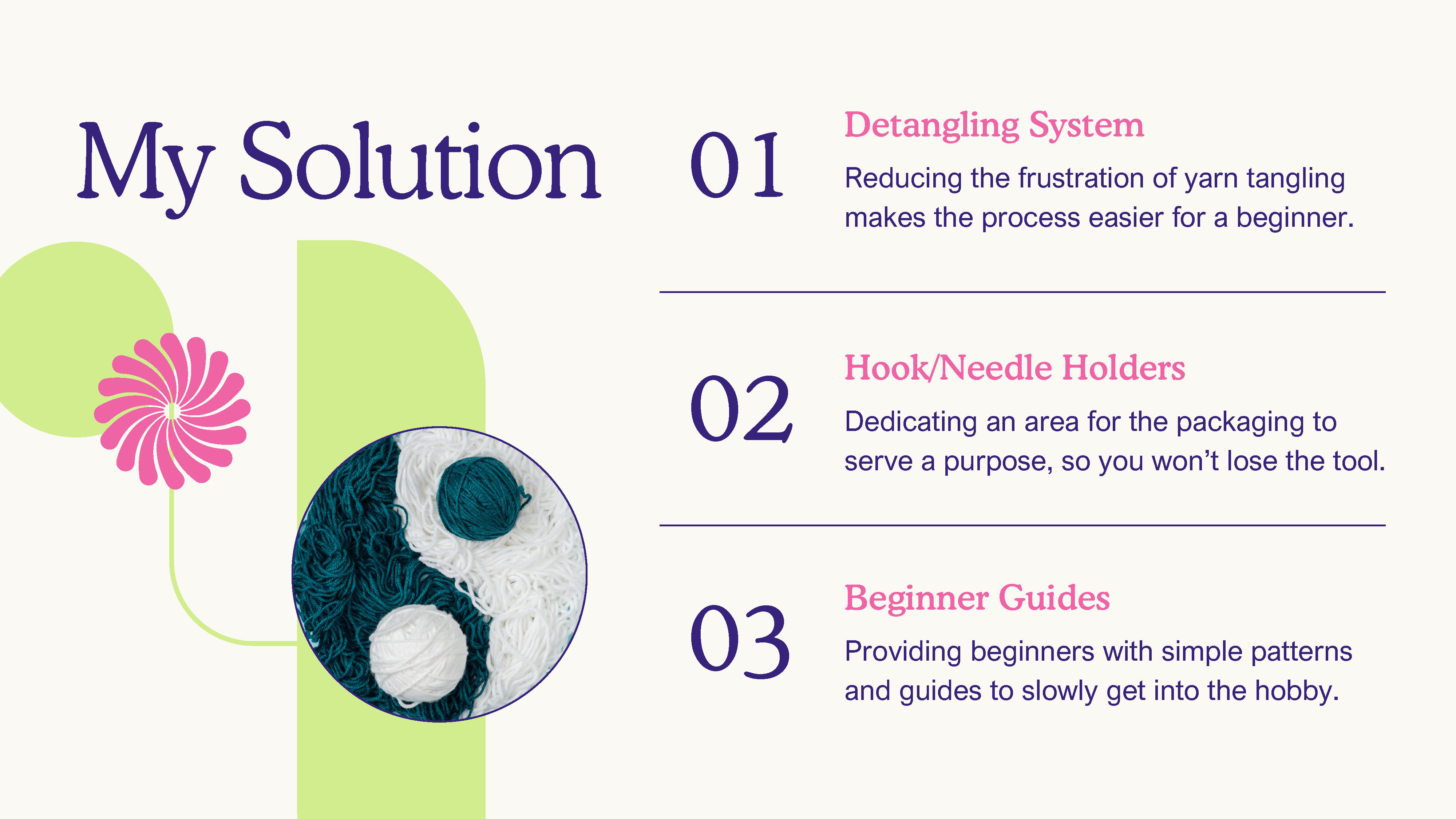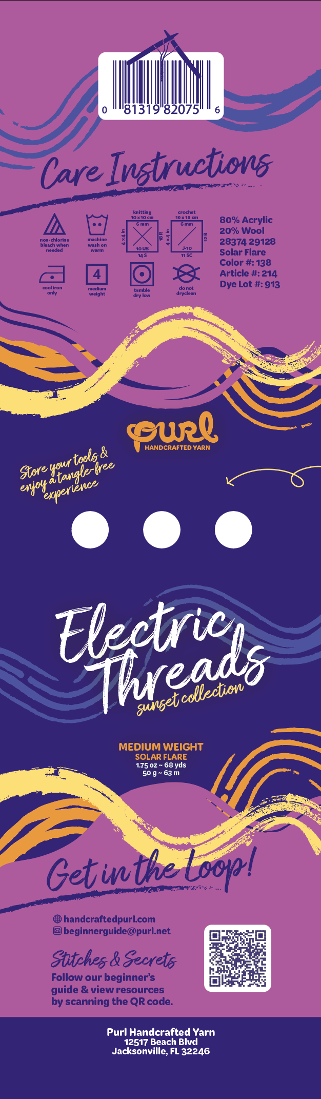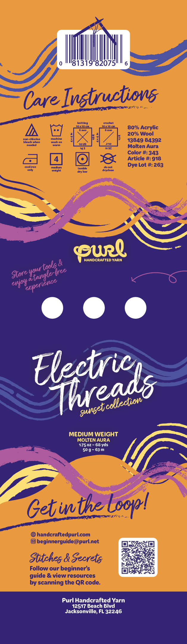‘Purl’ is the term for starting a new project as a crocheter. The concept is inspired by solving design flaws that are common with traditional yarn packging. This unique label concept with built-in tool holders and a simple detangling system provides a creative solution.