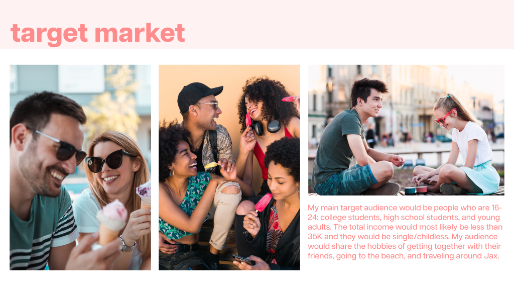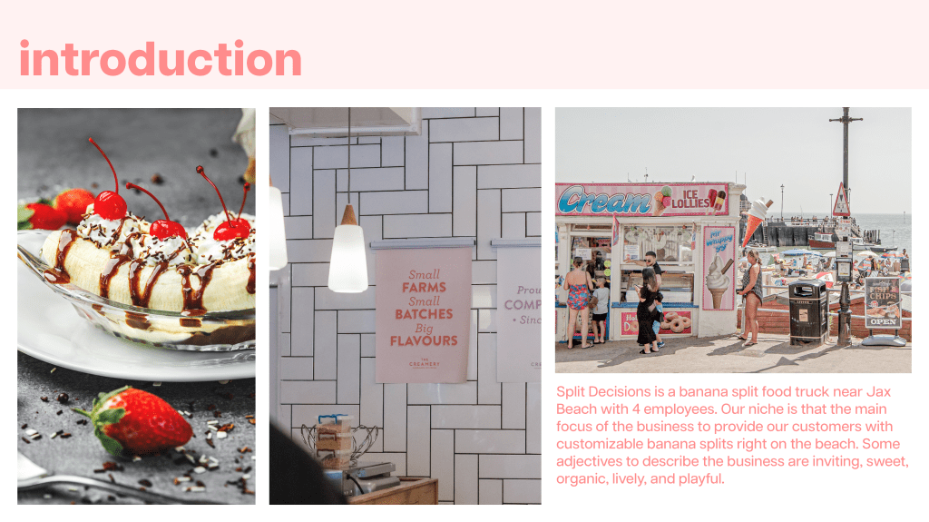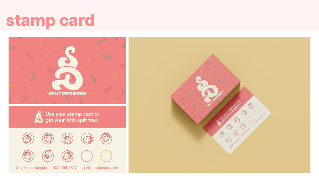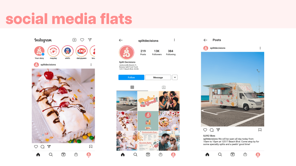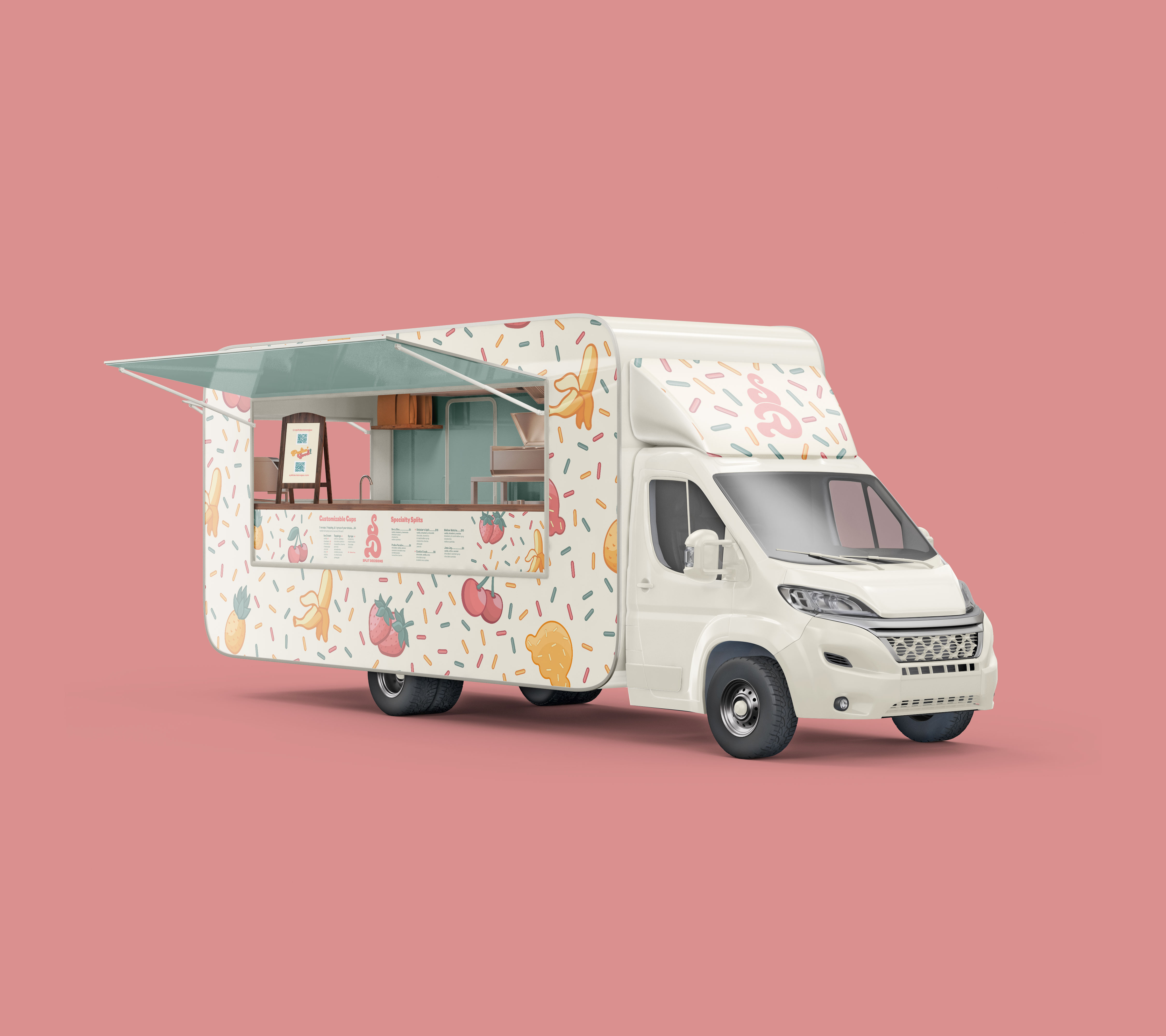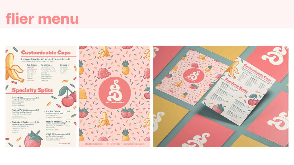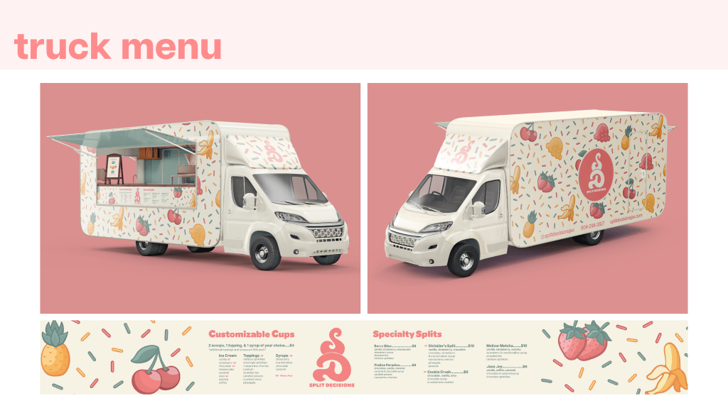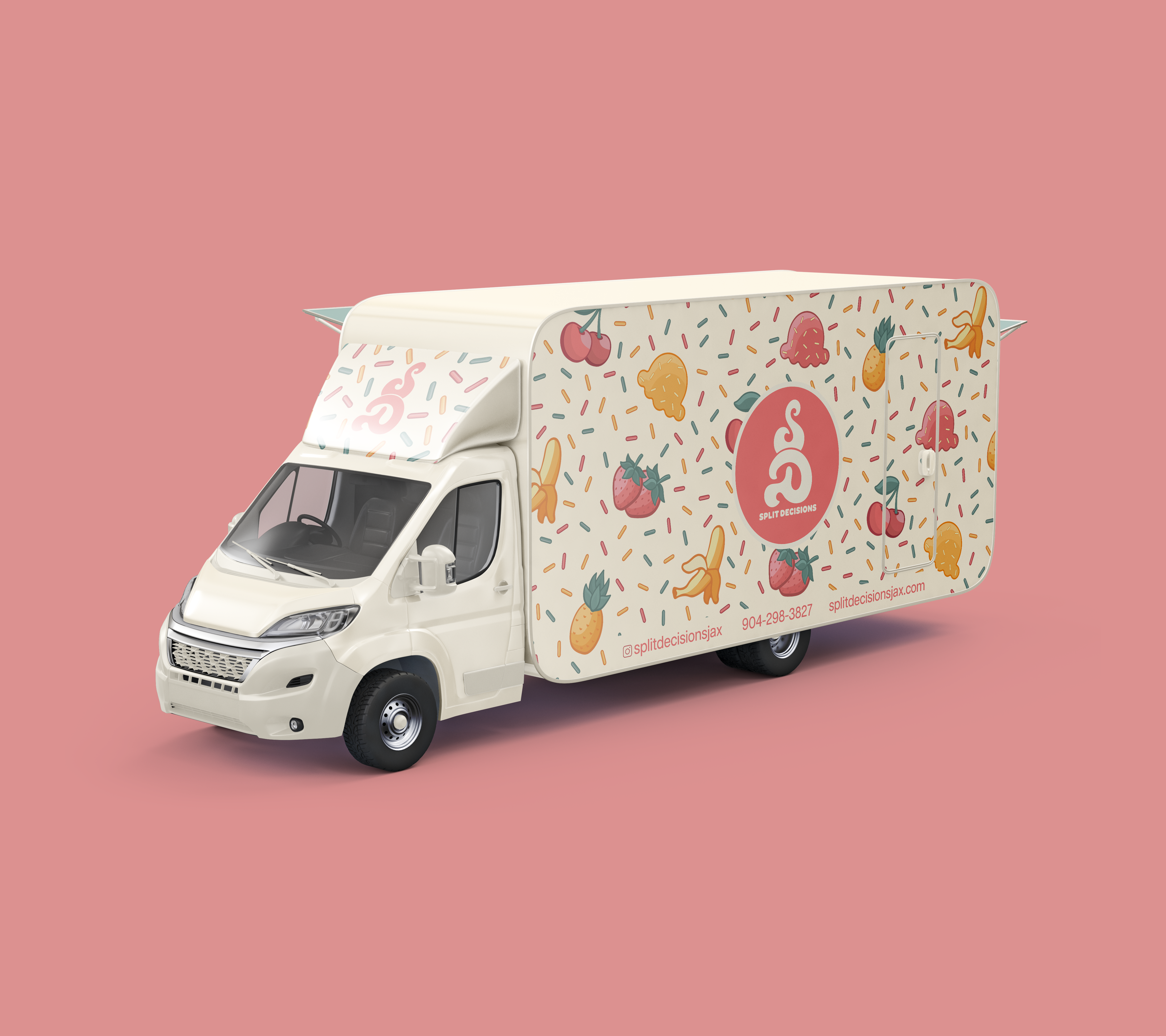 A self-conceptualized branding system with a focus on packaging design and marketing. The concept highlights a customizable banana split food truck, located in the local area of Jacksonville Beach, Florida near the boardwalk on the hot summer weekends.